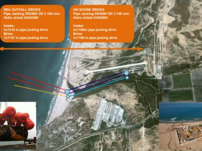 650 m de microtúnel DN1200 para captación y 700 m DN1000 para retorno.